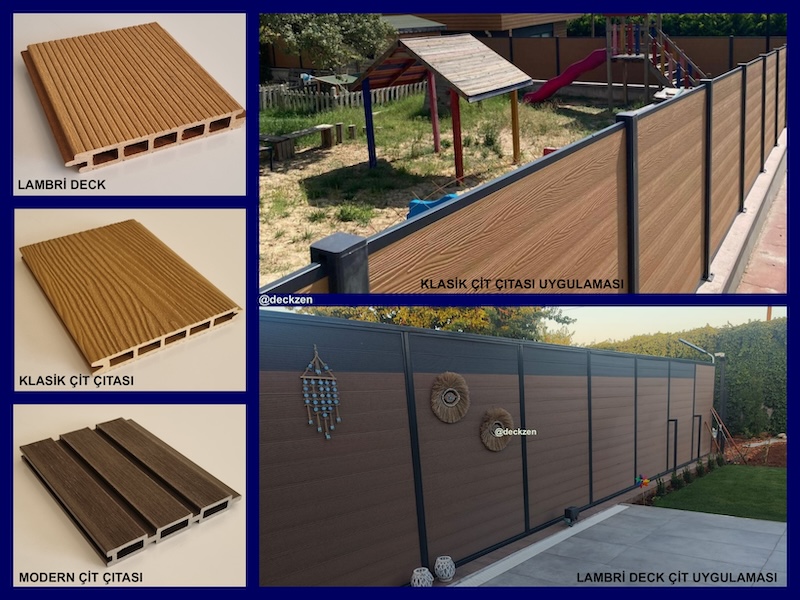 Mersin Kompozit Cit hizmeti verdiğimiz ahşap desenli kompozit deckler, doğal ahşaba alternatif olarak günümüzde en çok tercih edilen kaplama malzemelerinin başında yer almaktadır. Mersin Kompozit Cit İklim koşullarına dirençli, bakım gerektirmeden uzun yıllar kullanabileceğiniz kompozit deck malzemeleri, teras, balkon, kış bahçesi, havuz çevresi, iskele, peyzaj, cafe restoran alanları gibi genis bir kullanım yelpazesine sahiptir.